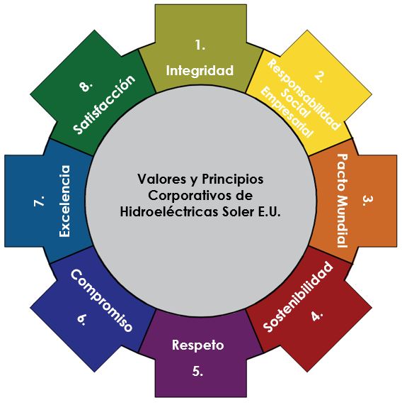RESPONSABILIDAD SOCIAL EMPRESARIAL: Hidroeléctricas Soler E.U. es una empresa que adopta una postura activa y responsable frente a los impactos ambientales, sociales y económicos de sus operaciones; buscando siempre desarrollar sus actividades basadas en principios éticos y apegados a la Ley Colombiana.